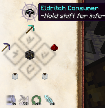 - Древний потребитель - генерирует эссенцию на счет боков под ним ( поставили в биоме, он его скушал, дал эссенцию) . Вывести эссенцию можно трубами, потребляет rf для своей работы